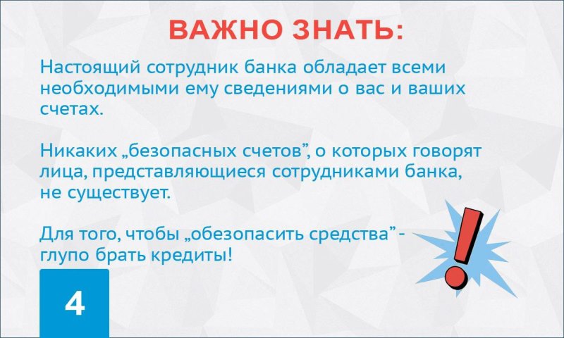 целях исполнения пункта 4.1 раздела 1 протокола заседания межведомственной рабочей группы по вопросам противодействия незаконным финансовым операциям в Южном федеральном округе от 27 декабря 2023 г. № А52-5701-34 о проведении на постоянной основе мероприятий по информированию населения о видах и способах хищений денежных средств, совершаемых с использованием IT-технологий, а также мерах безопасности при использовании электронных платежных систем предлагаем познакомится с информацией: