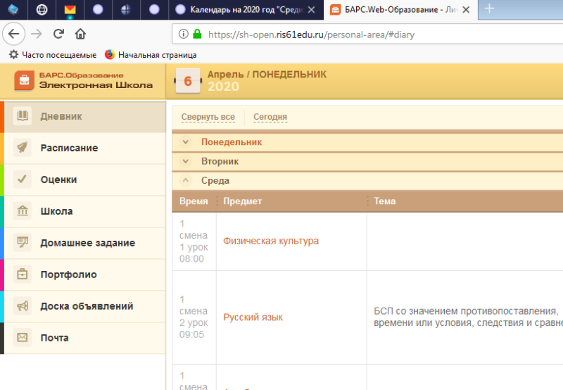 3. По каждому из предметов в расписании отображаются: тема урока, домашнее задание, прикрепленные файлы с заданиями, тестами, интернет-ссылками для изучения.