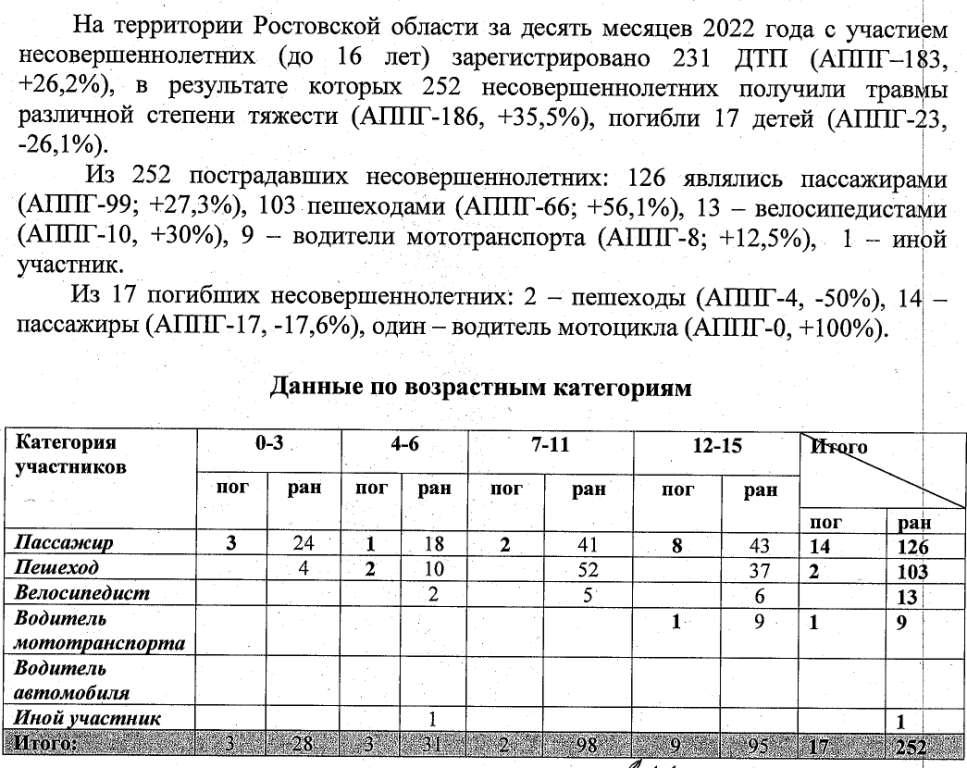 Анализ ДТП с участием несовершеннолетних за начало 2023 года