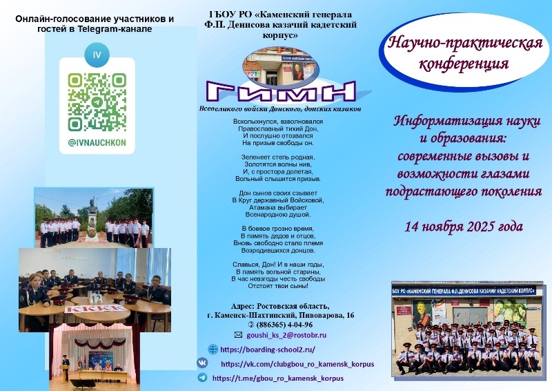 Программа проведения V научно-практической конференции «Информатизация науки и образования: современные вызовы и возможности глазами подрастающего поколения»